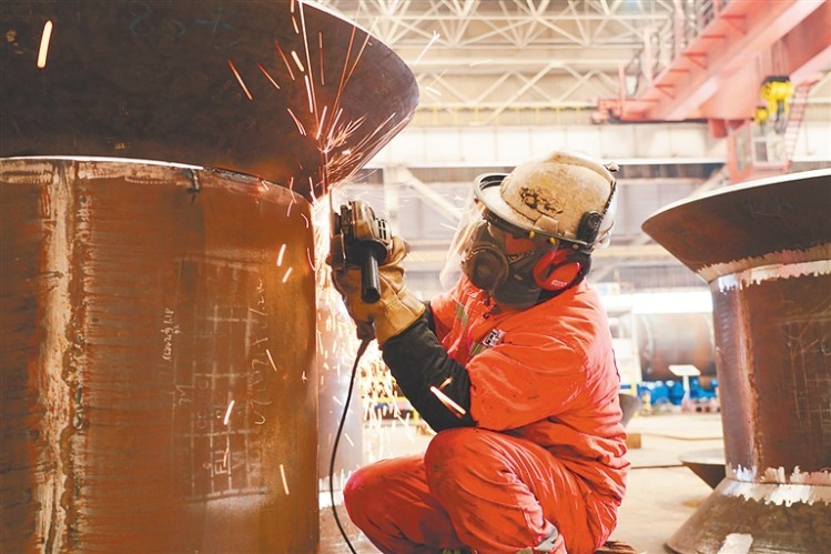 我国首个海上注碳增气技术示范应用项目海上平台开工建造场景。受访者供图