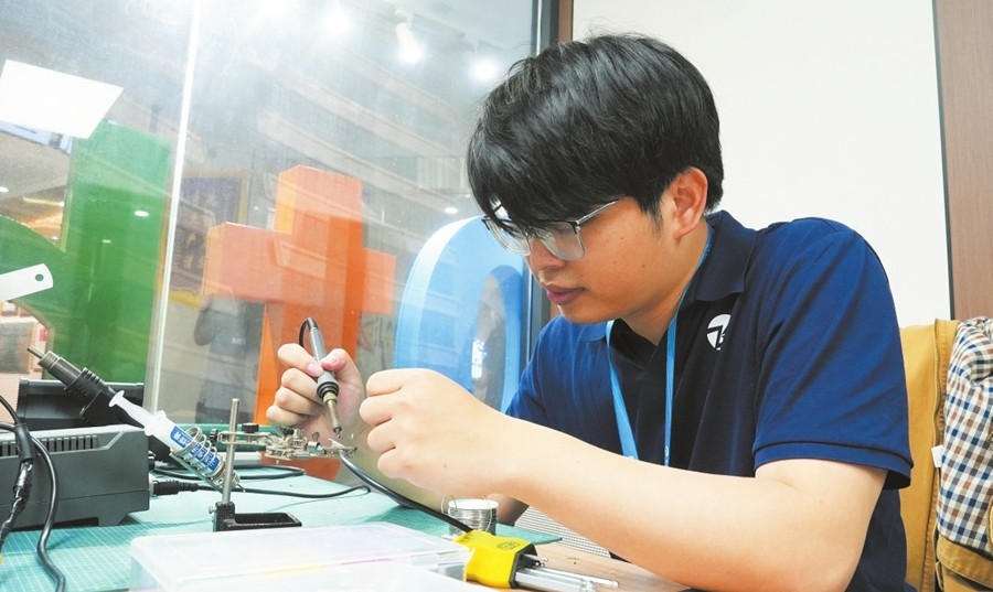 4月20日,在位于美兰区的海南飞行者科技有限公司内,工作人员正在维修设备。本报记者 杨忠凯 摄