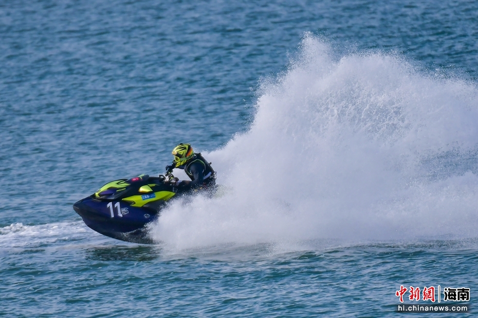 图为2022年12月11日,2022年中国摩托艇公开赛(海南万宁站)在海南省万宁市神州半岛开幕。参赛选手在比赛中。骆云飞摄