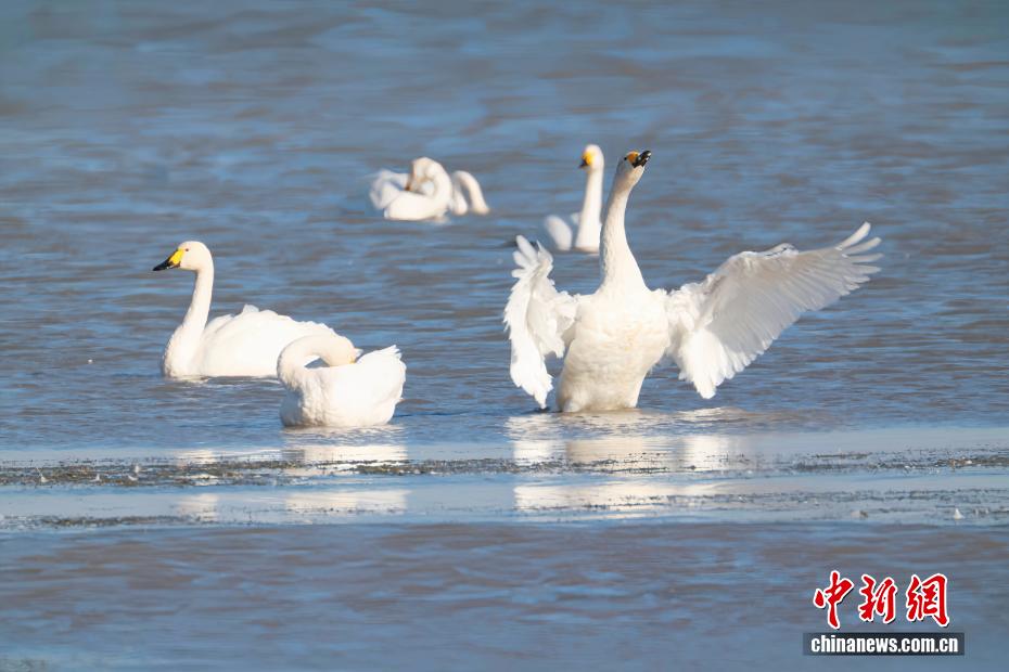 近日,位于内蒙古自治区通辽市科尔沁左翼中旗境内科尔沁湿地公园,吸引天鹅、苍鹭、鸿雁、野鸭等大批候鸟前来栖息停留。它们或在碧波间优雅游弋,时而曲颈理羽,时而在水中嬉戏,绘就生命与自然的和谐的景致。图为候鸟在水中栖息。