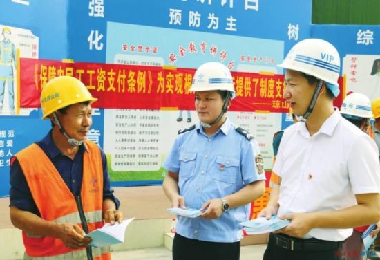 “自《保障农民工工资支付条例》颁布以来,我区坚持宣传贯彻条例精神,不断规范农民工工资支付主体行为,保障农民工工资按时支付。”大队长陈栋介绍,此次开展《保障农民工工资支付条例》宣讲会,旨在促进用人单位依法依规用工,履行工资主体法律责任,引导农民工依法理性维权,形成“不敢欠、不能欠、不想欠”农民工工资的有效机制,围绕根治欠薪工作的总要求,全面提升琼山区根治欠薪法制化水平。