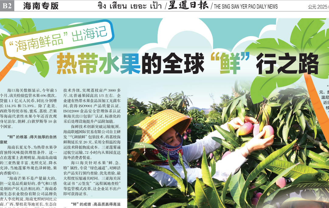 泰国《星暹日报》关注海南鲜品“鲜”行全球
