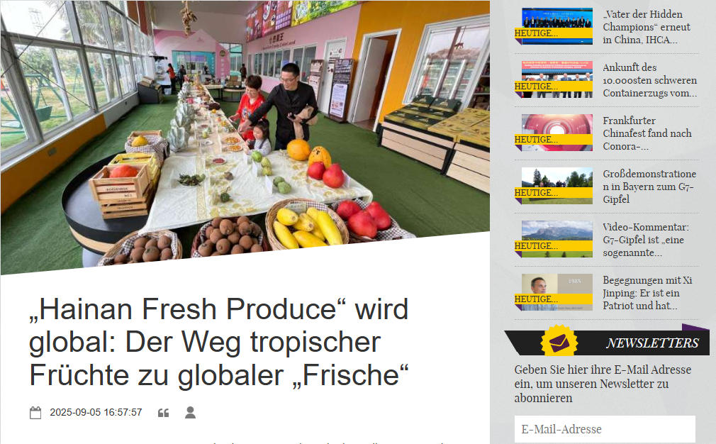 欧洲时报德文网刊发Hainan Fresh Produce“ wird global”: Der Weg tropischer Früchte zu globaler “Frische”