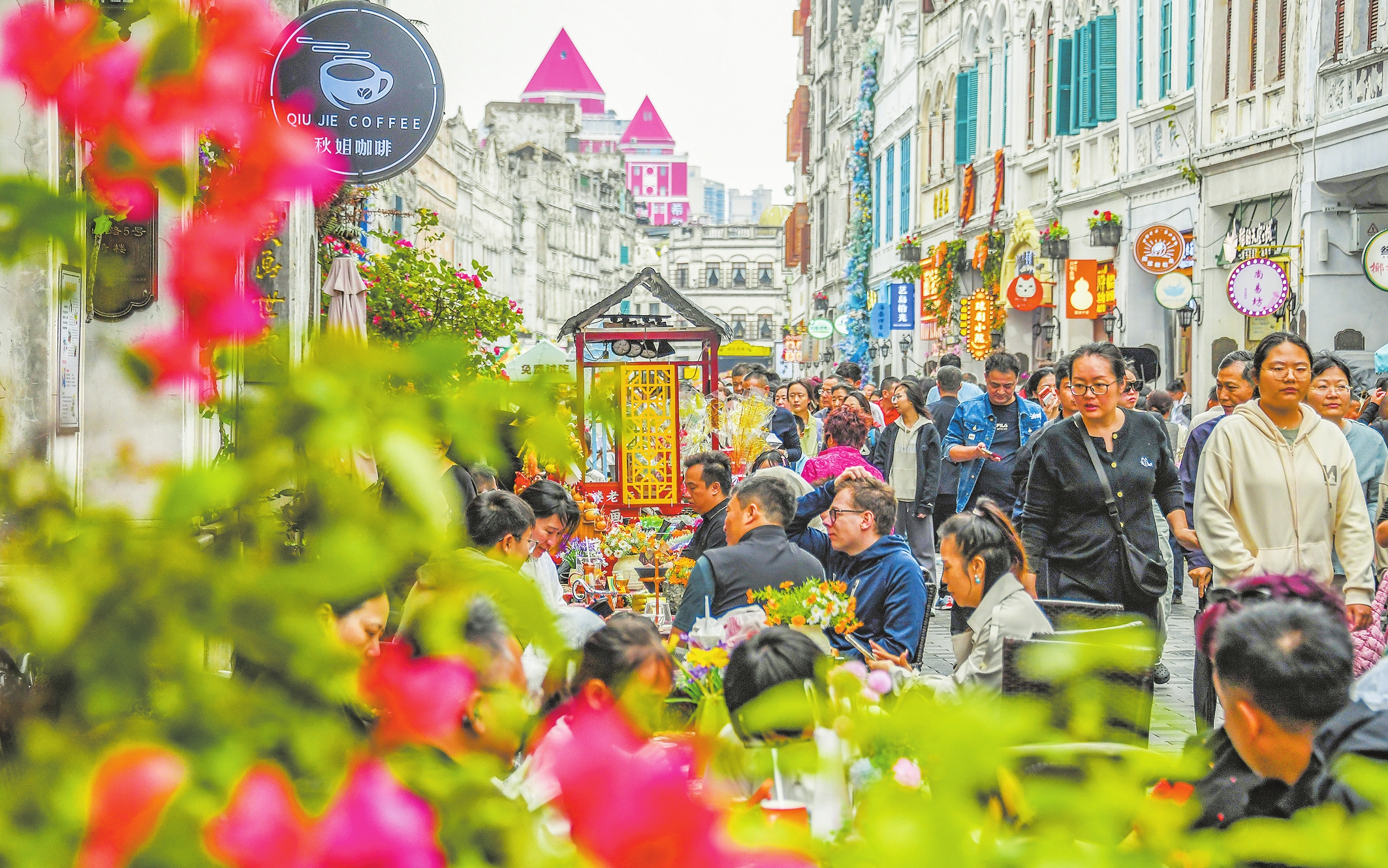 老街新岁人潮涌 海口百年骑楼南洋风催热“年经济”