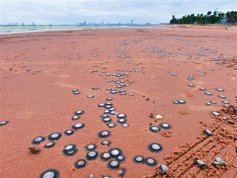海口西海岸海滩洒落“银币” 别碰!这种水母有毒
